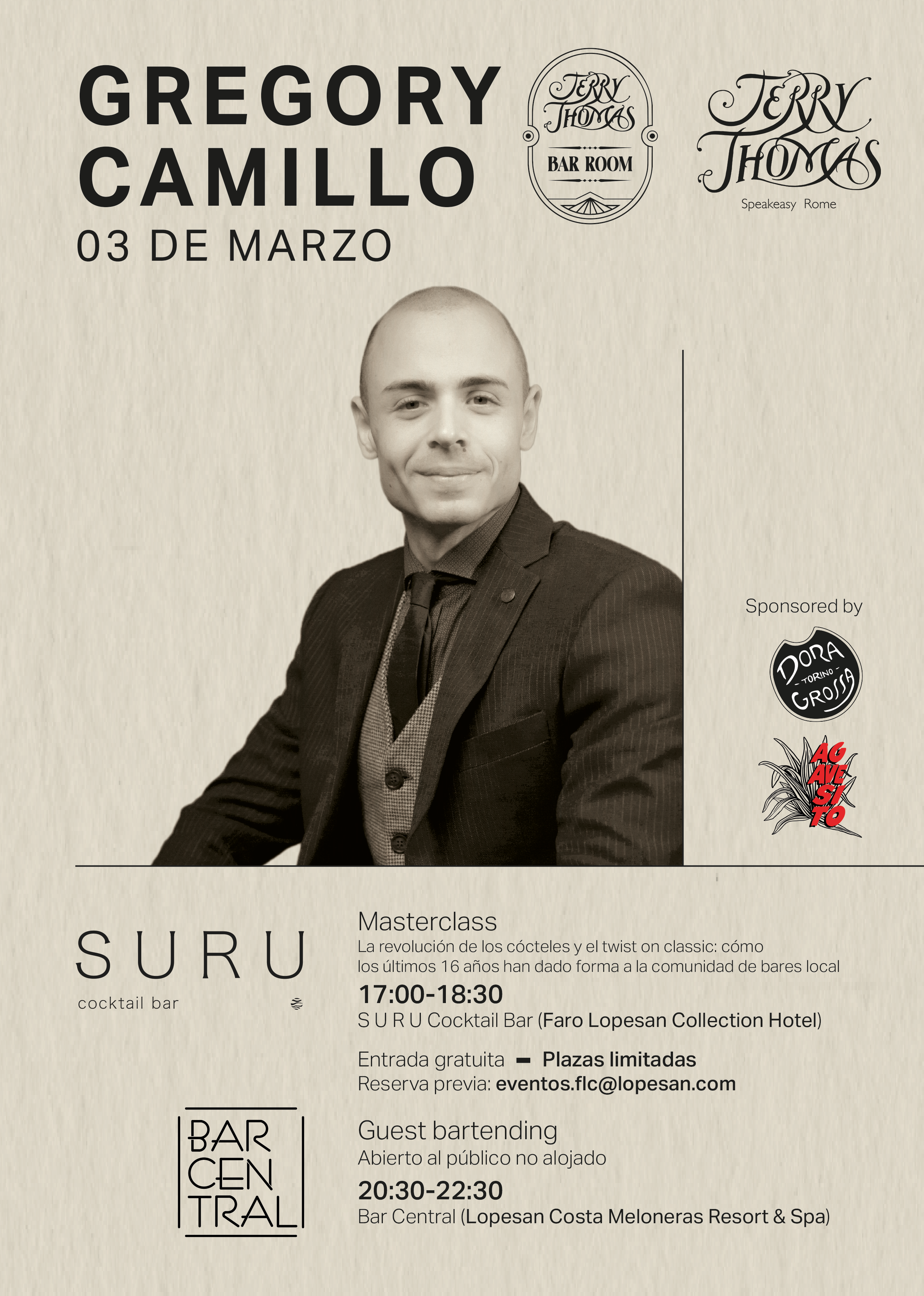 - El próximo 3 de marzo, el responsable del icónico bar romano Jerry Thomas Speakeasy, ofrecerá una master class para profesionales del sector en el S U R U Cocktail Bar, del Hotel Faro, a Lopesan Collection Hotel